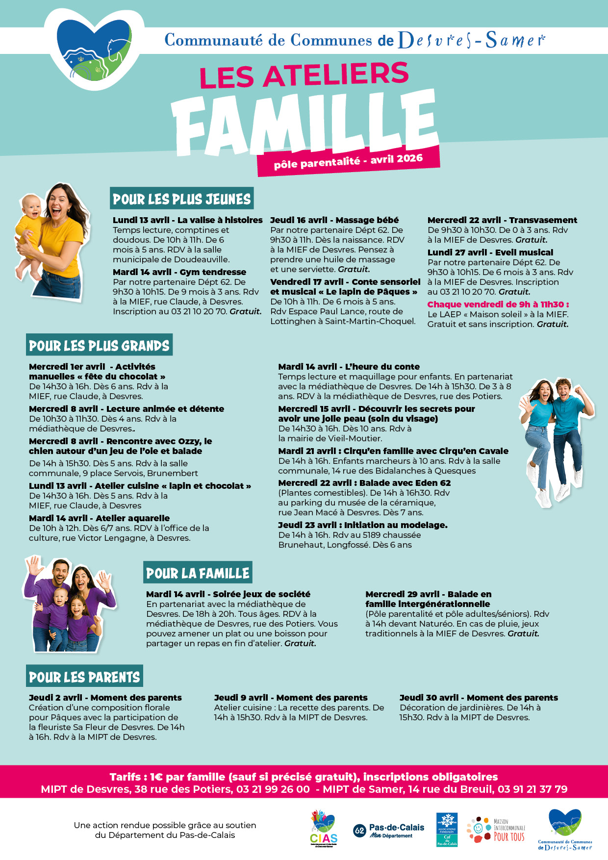 Communauté de Communes de Desvres – Samer : Les ateliers famille – Avril 2026