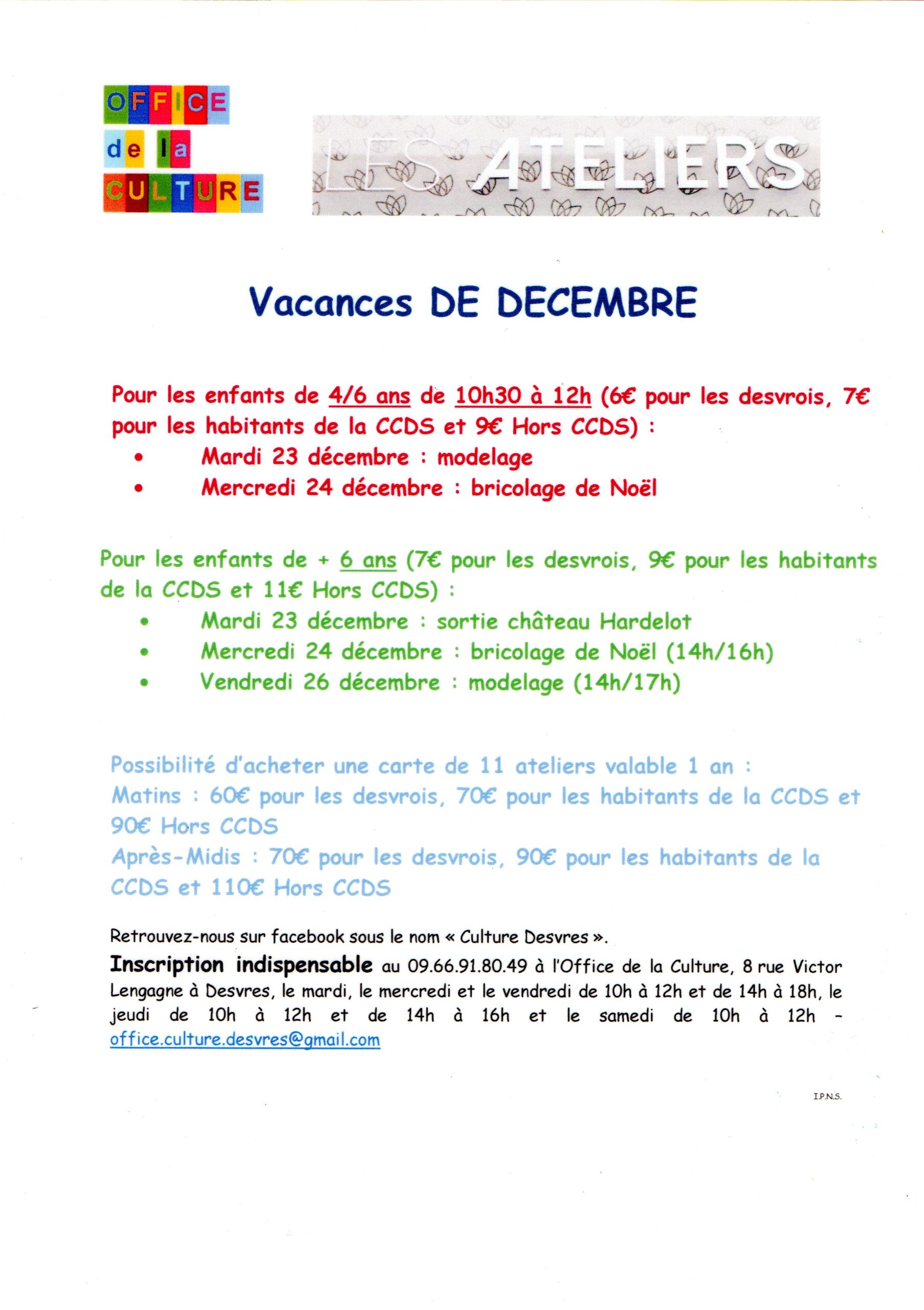 Accueil/Actualités/Vacances de décembre : les ateliers à l’office de la culture de Desvres
